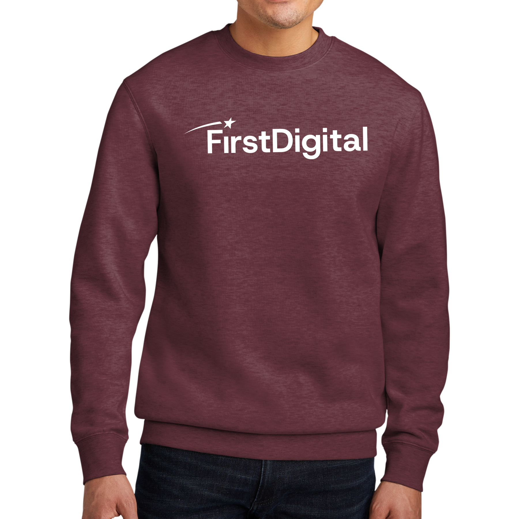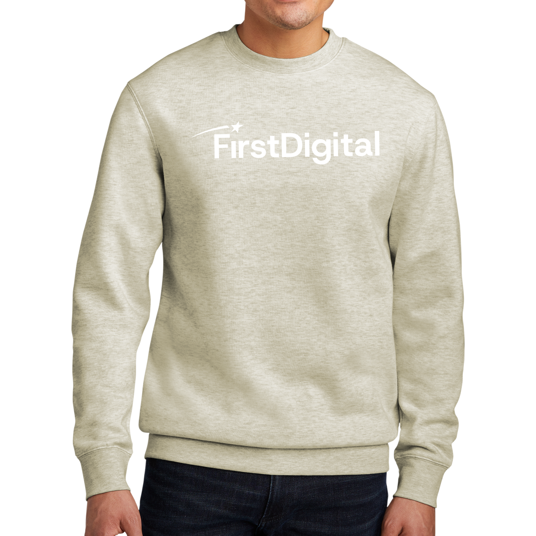- 60/40 ring spun cotton/polyester (Heathers and Royal Frost)