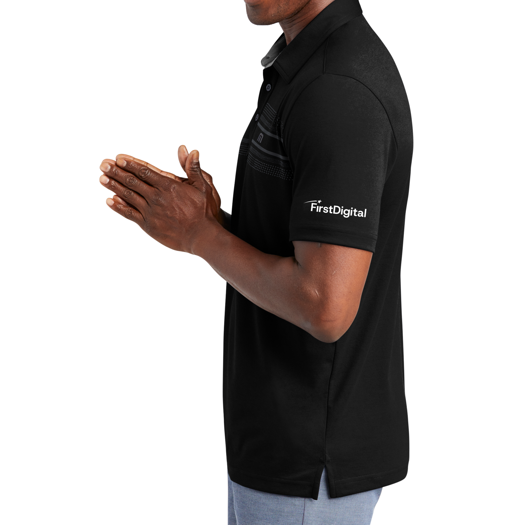 - Embroidered TM logo on left chest